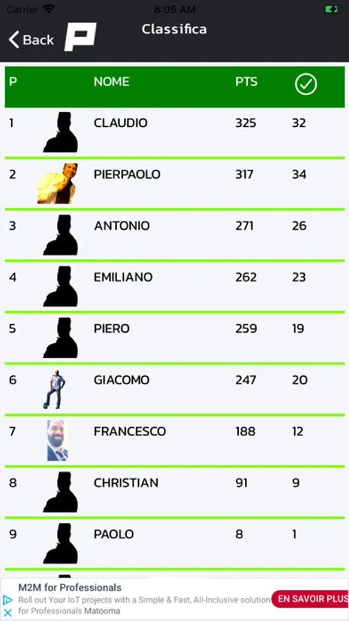 Nella Classifica, oltre al punteggio totale realizzato da ciascun giocatore, potrai visualizzare anche il numero totale di risultati esatti indovinati da ciascuno.