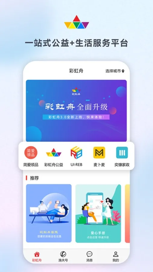 【彩虹舟】公益生活服务平台,为用户提供一站式公益+生活服务。