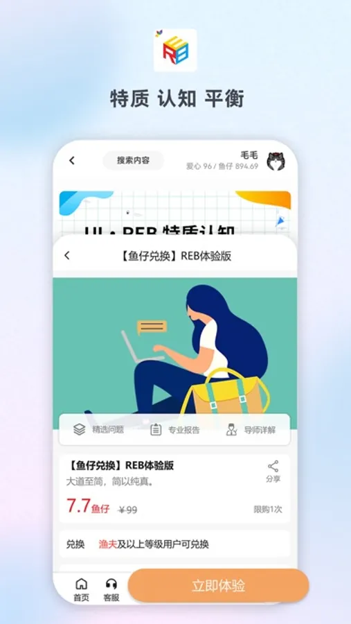 UI·REB——基于“大五人格”的理论,自主研发的特质认知平衡系统,通过科学有效的问答式测评,帮助现代人回归心理健康状态。