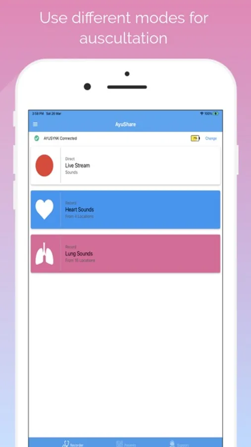 - The Application is a companion for the Digital Stethoscope called as AyuSynk which pairs up with a smartphone. This allows a Healthcare Professional such as a Doctor or a Nurse to listen to the heart and lung sounds of a patient. And at the same time it allows for them to record these sounds using the mobile application and share it with other healthcare professionals for the benefit of the patient.