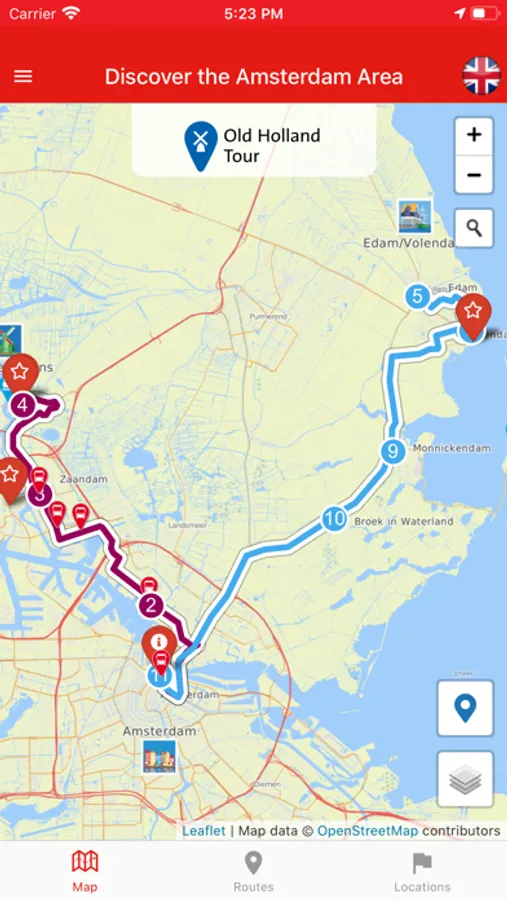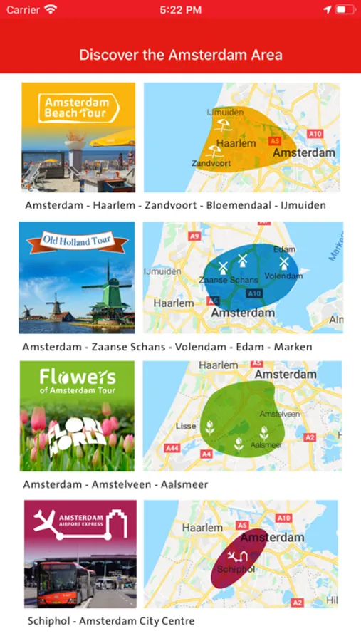 The free Discover the Amsterdam Area app contains 5 free tours and tells you everything about all the interesting sights you pass in 8 languages. Follow live where your bus is on the route so you are prepared to get off or hop on the bus in time.