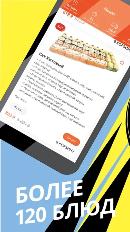 Мобильное приложение Суши на районе — это удобный интерфейс, вкусные фотографии, отличный выбор блюд, классные акции, ну и, конечно же, быстрый и отлаженный сервис.