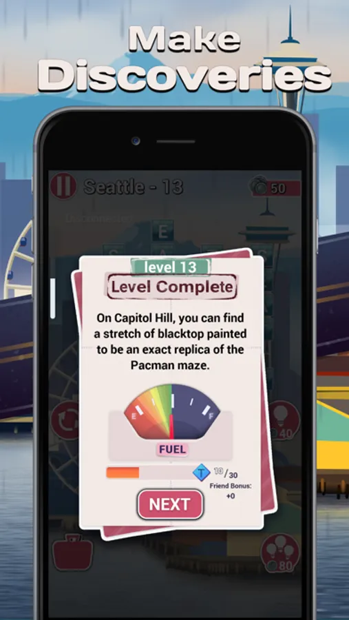 Explore beautiful vacation destinations in this charming crossword guessing game for the whole family! Each puzzle you complete (together or alone) gets you closer to the next stop on your virtual road trip across the nation. It adds fuel to your car and teaches you another interesting fact about your current location. Travelling together isn’t the only fun to be had though, because casually trying to beat your friend to the end of each level is a challenge in itself!