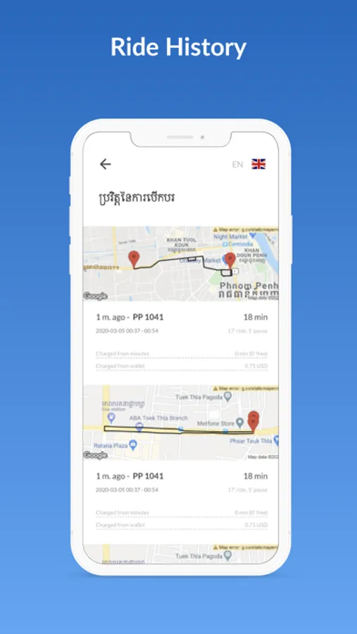 Ride sharing allows us to bring you the lowest cost transportation in Phnom Penh. You can rent a Go2 electric motorbike for a cost as low as 3 cents per minute!