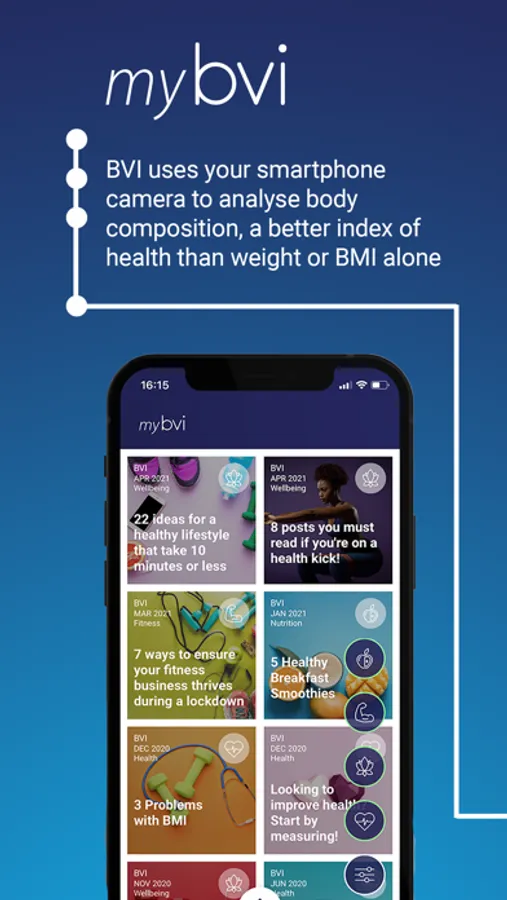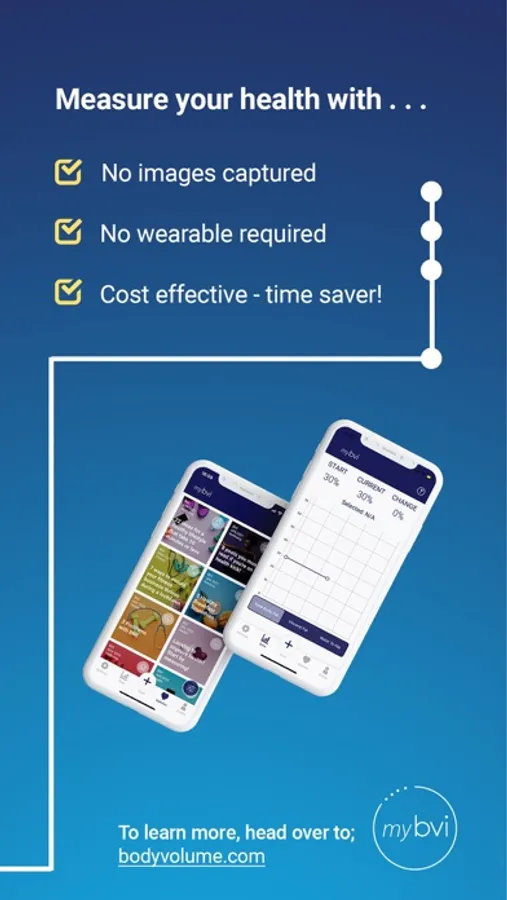 With myBVI you don’t need a wearable device or smart scales to monitor your health and understand your body composition. Body images are never captured, and no data is stored anywhere other than in your own smartphone. The myBVI app allows you to track your body composition in the comfort of your own home in just a few seconds, providing data to help you focus on your health by understanding what the weight is and where it is, rather than just total weight.