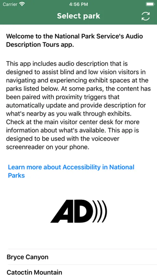 This app includes audio description designed to assist blind and low vision visitors in navigating and experiencing exhibit spaces at the parks listed below. At some parks, the content has been paired with bluetooth proximity triggers that automatically update and provide description for what's nearby as you walk through exhibits.
