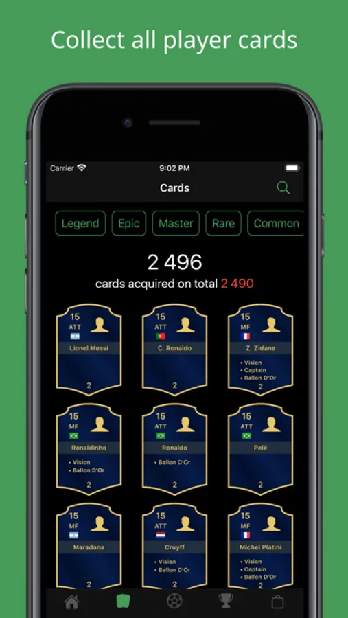 Become the first to collect all the soccer player cards.