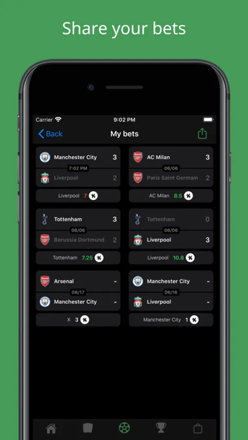 * Share your bets with your friends