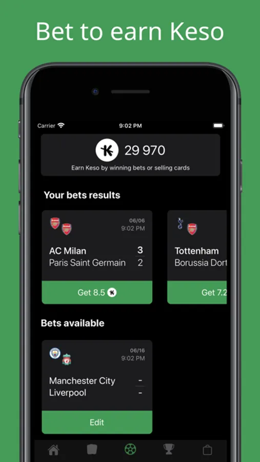 * Make bets on football matches to win Keso