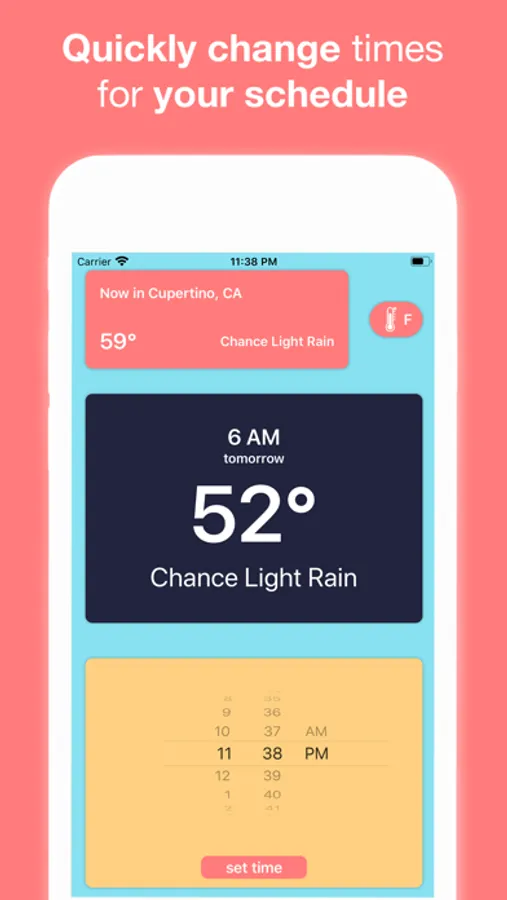 Nowcast provides you with instant access to your commuter weather. It is a simple yet very effective app. You can set two time slots in which you would like weather to display. It will show you brief yet informative weather information for each of those times.