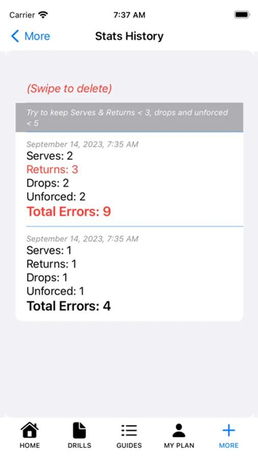 -- "My Plan" : Notes where you can add the skills you want to practice or you can add a specific drill from the list of drills in the app