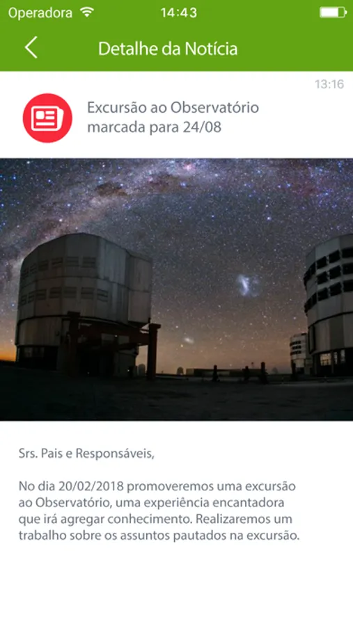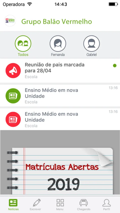 Com este aplicativo, os pais, responsáveis e professores poderão receber as últimas informações da escola, as notícias do dia a dia dos seus filhos e o calendário de atividades escolares.