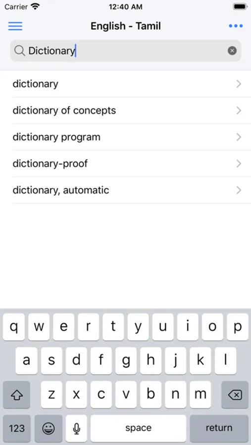 Tamil Dictionary is a FREE must-have app for English to Tamil / Tamil to English translation purposes, with a database of more than 400,000 words for iOS 11 and above.