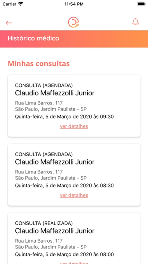 Outra vantagem do Dr. Conecta é que todo o histórico da consulta fica salvo no aplicativo, sempre fácil de consultar receitas, atestados e resultados de exames.