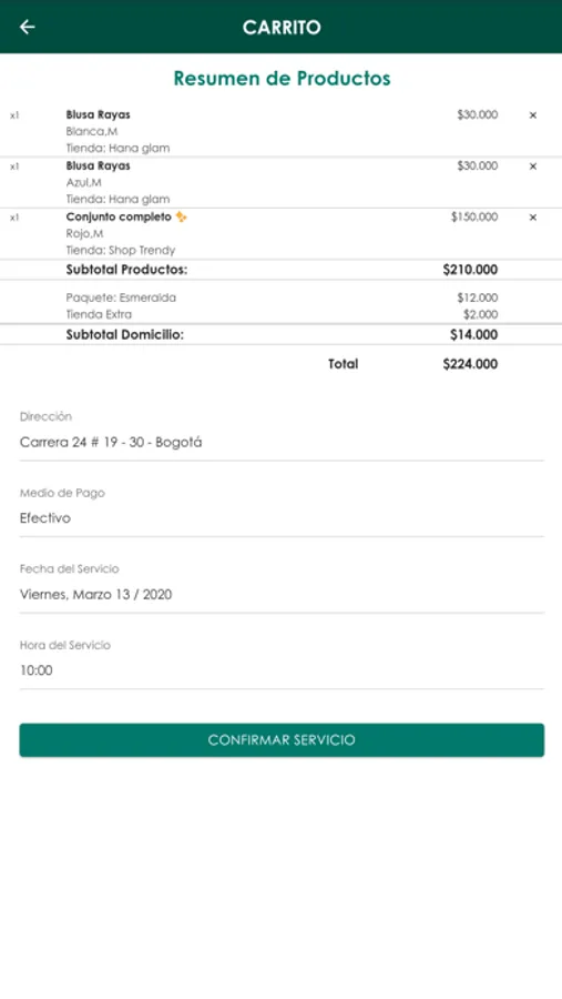 Paquete Esmeralda: El usuario puede elegir máximo tres productos de los catálogos de las tiendas aliadas (Máximo 2 tiendas aliadas) y podrá realizar la prueba del producto por un tiempo de 20 minutos.