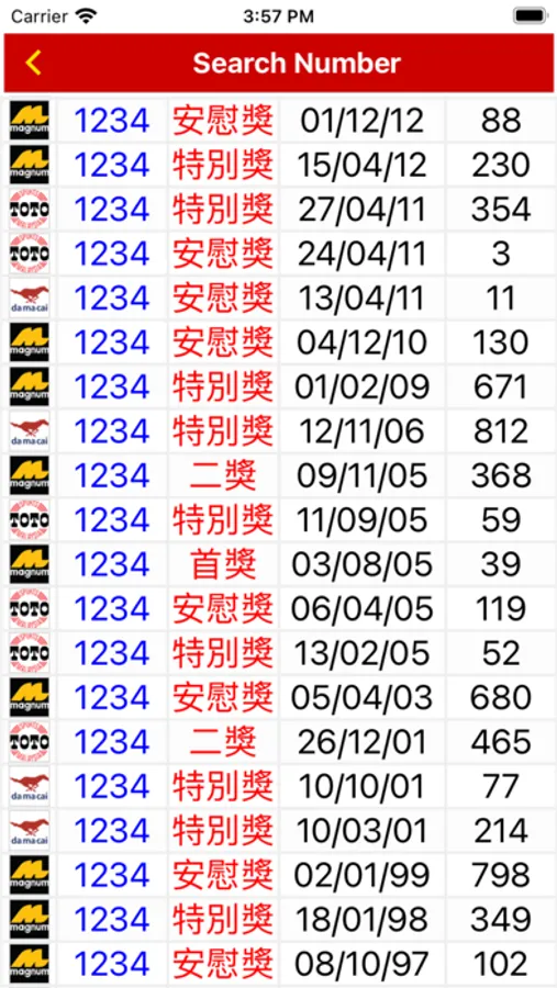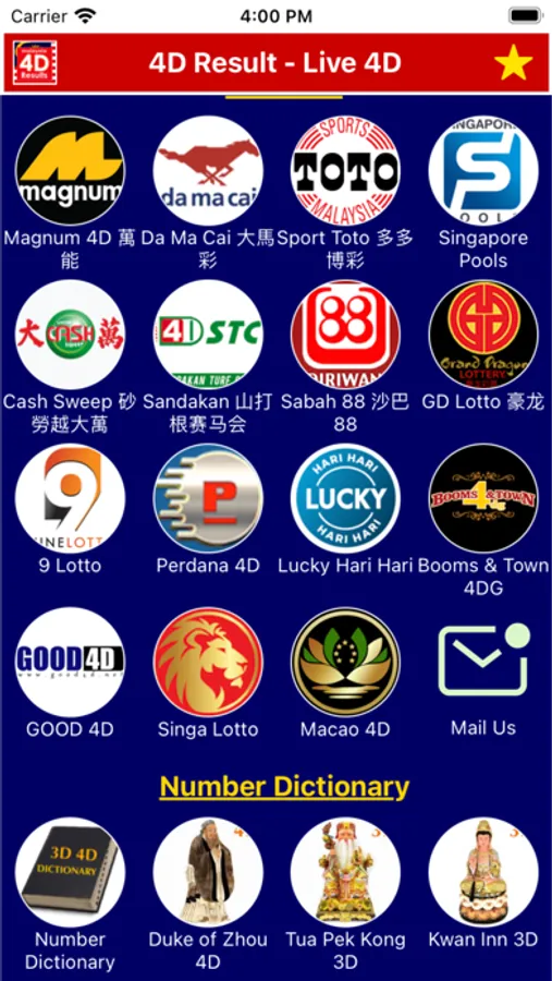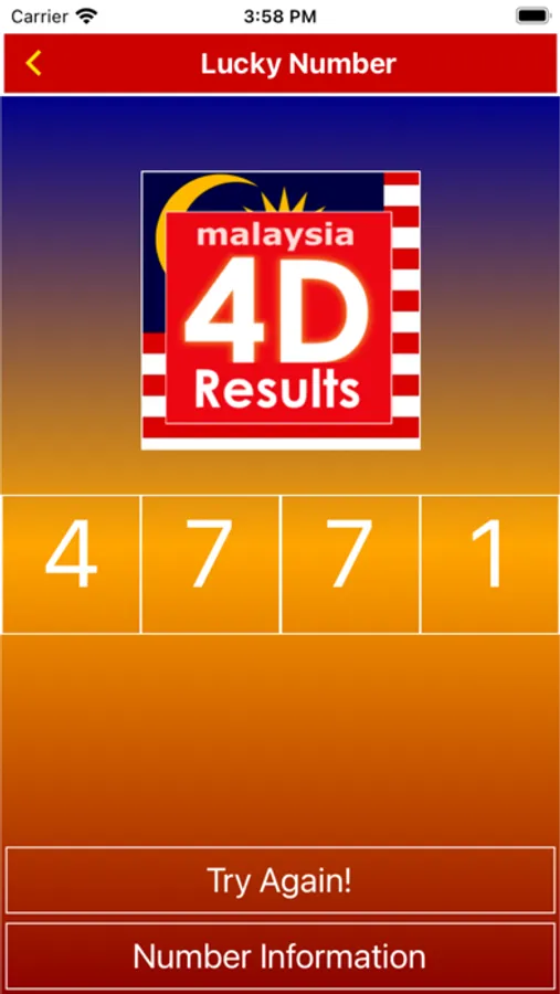 With every effort made to ensure the accuracy of the 4D results published on this App, we do not warrant its accuracy for several reasons including time delays incurred in completing necessary updates.All contents/4D results provided herein is solely for information purposes and is provided on an "As Is" basis only without any warranty or representation of any kind, expressed or implied, as to their accuracy, completeness, timeliness or otherwise. In no event shall the owners of this App have any responsibility or liability for any damage and/or losses incurred (whether arising directly or indirectly) in connection with any accuracy, timeliness, errors, omission and/or information appearing herein and/or on the website.All logos, brands and product names referenced herein are the trademarks or registered trademarks of their respective holders. This site is not affiliated to any of the organisations linked or described. We do not provide, promote or encourage any form of gambling services / activities.