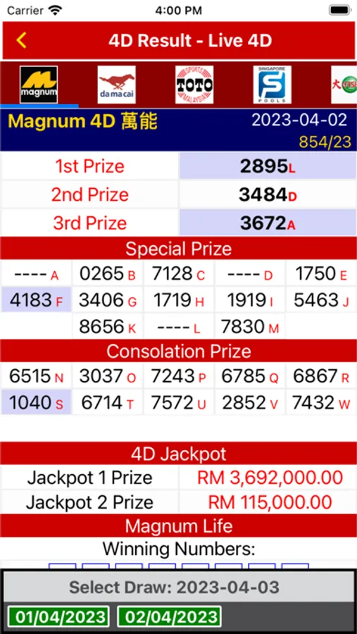 4D Results - Malaysia 4D Live - Malaysia 4D(Magnum Toto), Singapore Toto 4D and Cambodia Lotto 4D Results