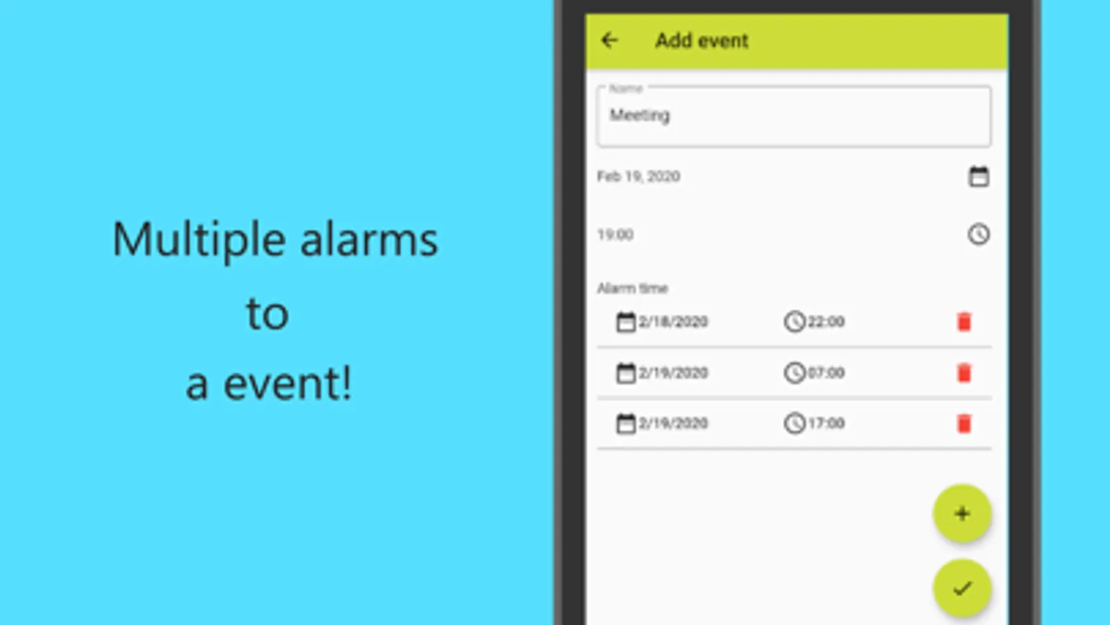 This is a free app add multiple alarms for each schedules.