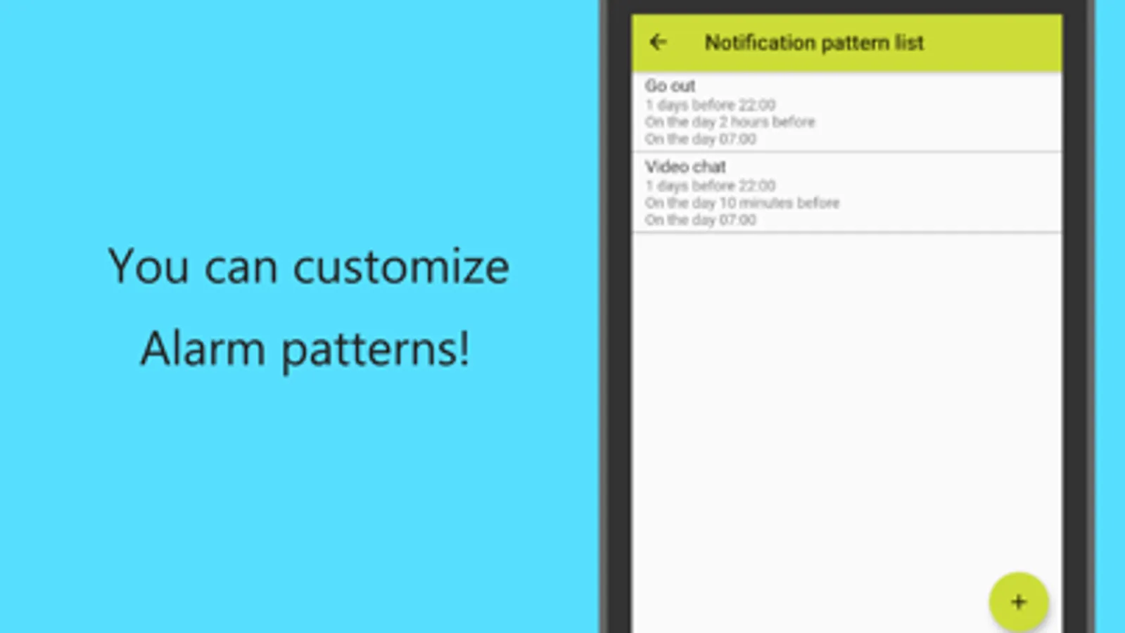 There are two preset patterns. And you can create original alarm pattern too. Let's try!