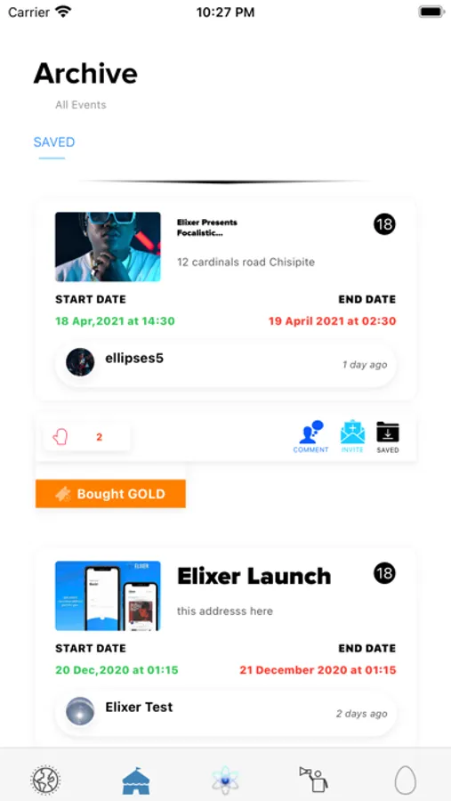 Elixer is your newest and most viable platform that allows you to create events of varous categories...for example, one may host a live concert. Users within the app can book and get tickets and track age and gender specific events immidiately and the best part is Elixer will allow you save those events so you can buy your tickets later on where you left off.