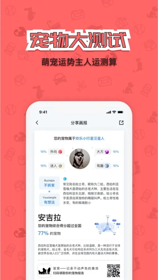 通过大数据智能AI算法 算出您宠物的五官面相、性格、情商、智商打分,更能测出宠物主人的运势
