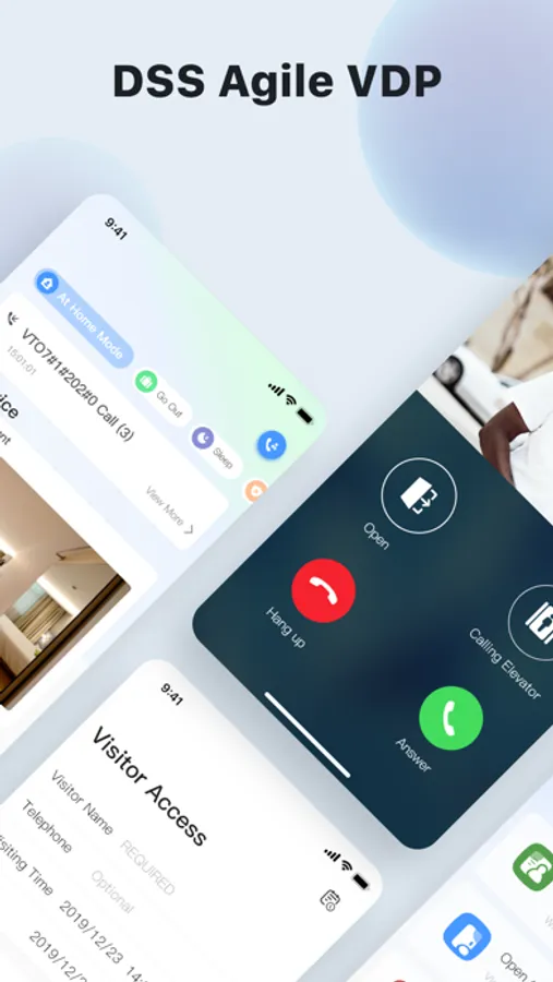 The DSS Agile VDP is designed for community residents, together with your VTH, it can work with DSS platform and enable you to answer VTH calls on your phone anytime, You can also monitor through connected VTO, unlock the door, call management center, and view all records and messages.