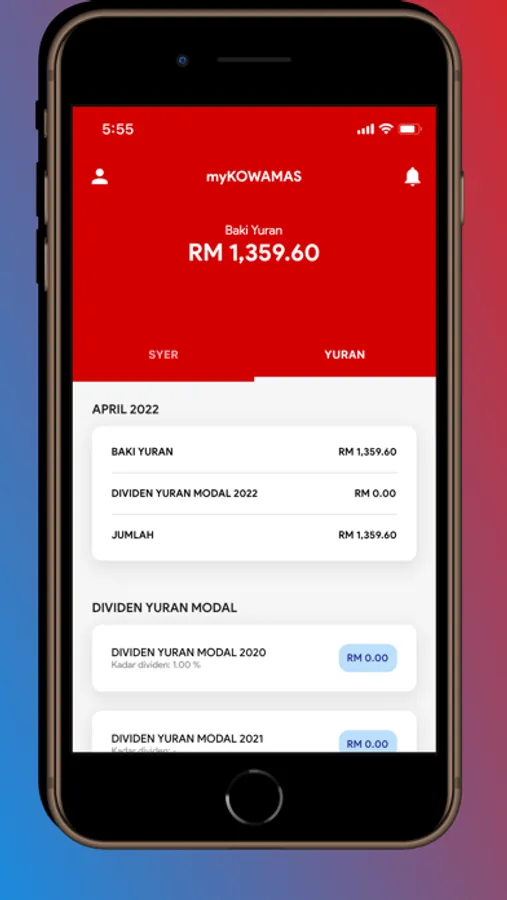 Sebagai anggota KOWAMAS, segala syer dan simpanan yuran yang dilaburkan atau di carum ke dalam akaun keanggotaan KOWAMAS anda telah di rekod dalam sistem komputer KOWAMAS. Syer dan simpanan yuran anda diberikan ganjaran berbentuk dividen setiap tahun berdasarkan prestasi perniagaan KOWAMAS yang baik. Melalui aplikasi ini, anda dapat mencapai maklumat berkenaan dividen serta rekod transaksi terkini syer dan simpanan yuran anda dengan lebih mudah dan telus.