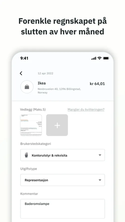 betale for og rapportere jobbrelaterte utgifter. Appen gir deg