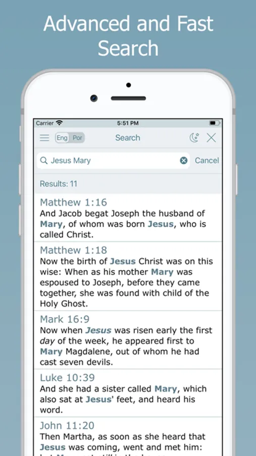 Fast search, simultaneous works with multiple verses, text customization, flipping pages option -- all works offline