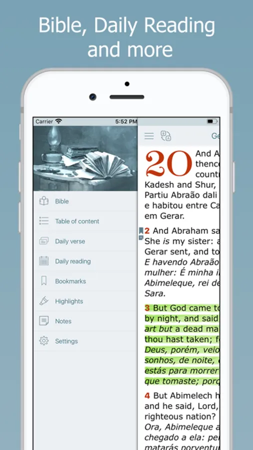 Easy to to use, day and night modes, interface rotation, fast navigation, configurable notifications for daily reading