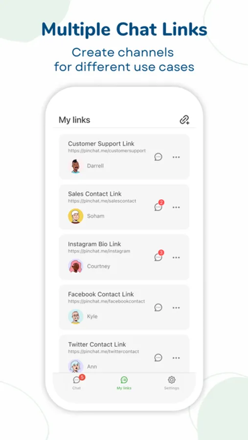 PinChat is a whole new B2C messenger. PinChat let you open a quick chat only via a link.