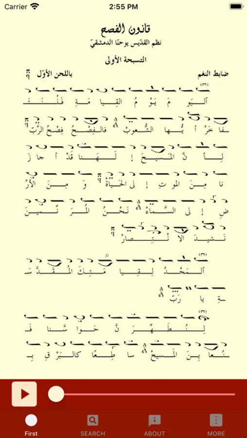نقلاً عن مجموعة المنشورات الموسيقيّة لكنيسة الروم الملكيّين الكاثوليك - المجلّد الثالث