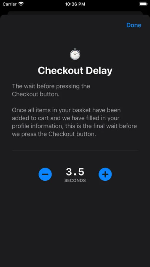 • Checkout delay (±0.1s), the time the bot waits before clicking the Checkout button