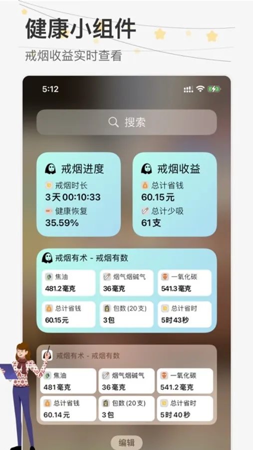 ■ 自定义首页背景、头像、昵称、戒烟口号等信息。