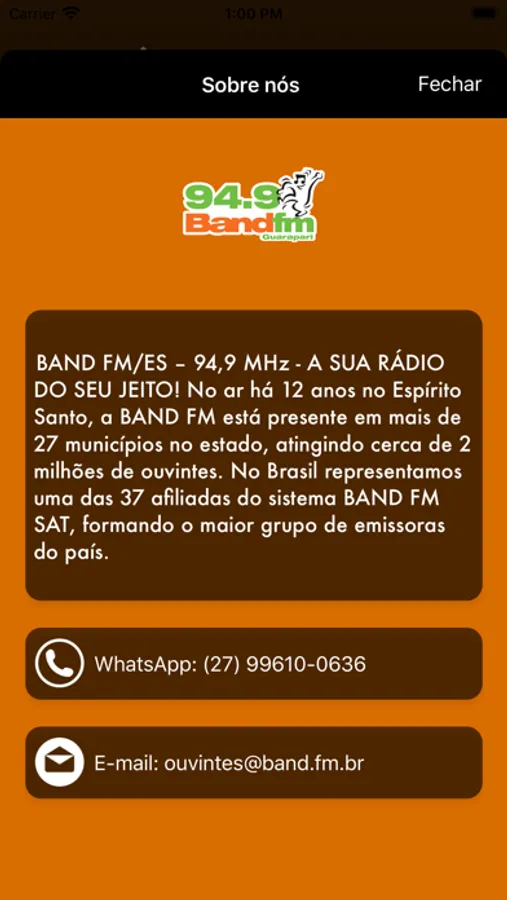 BAND FM/ES – 94,9 MHz - A SUA RÁDIO DO SEU JEITO!