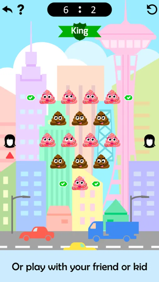 Pickus has 3 game modes to choose from: puzzle challenge, casual play with AI, or casual play with your friend or kid.