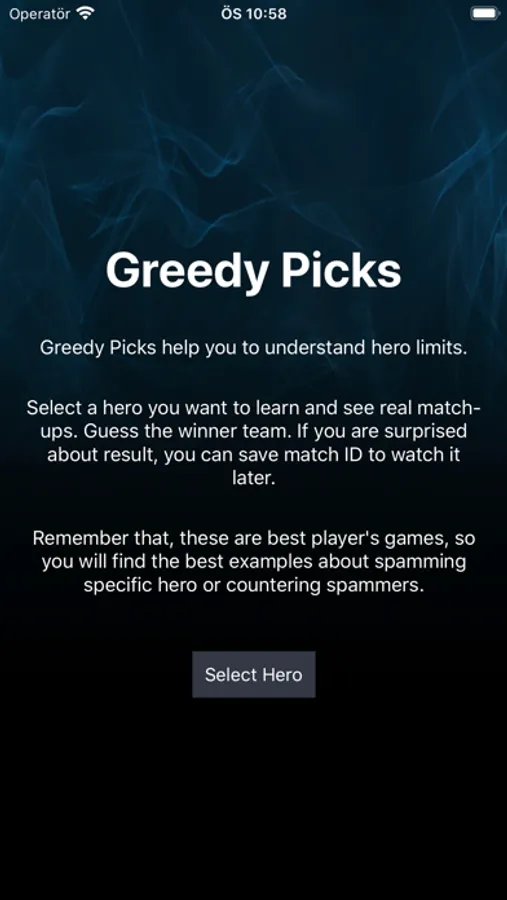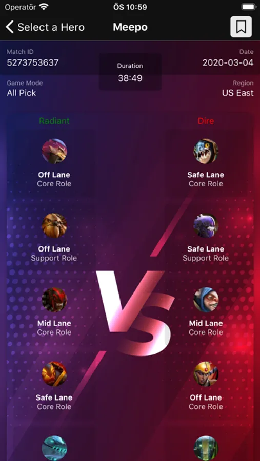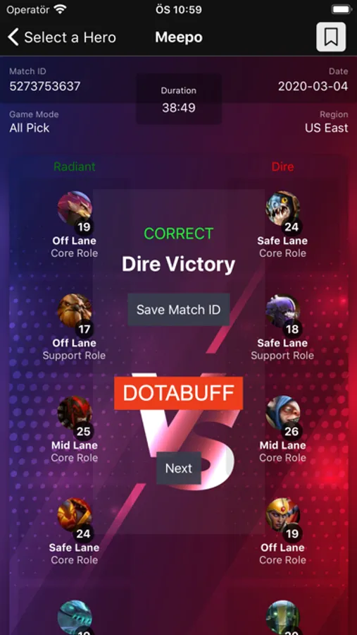 Select a hero to see best player's games. Try to guess winner team. If you are surprised about result you are free to save the match ID.