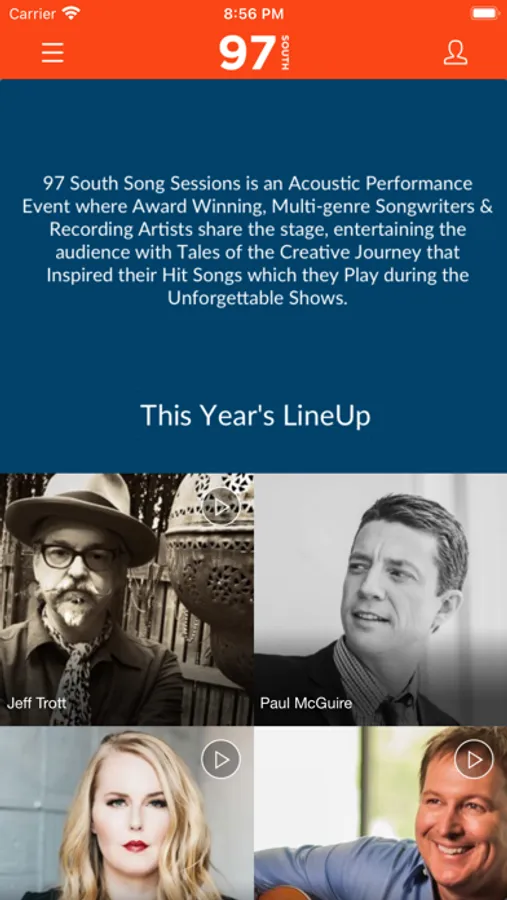 97 South Song Sessions is an acoustic performance event where award winning, multi-genre Songwriters and Recording Artists share the stage, entertaining the audience with tales of the creative journey that inspired their hit songs which they perform throughout the evening. The result is an intimate show that is variously touching and humorous, and certainly unforgettable.