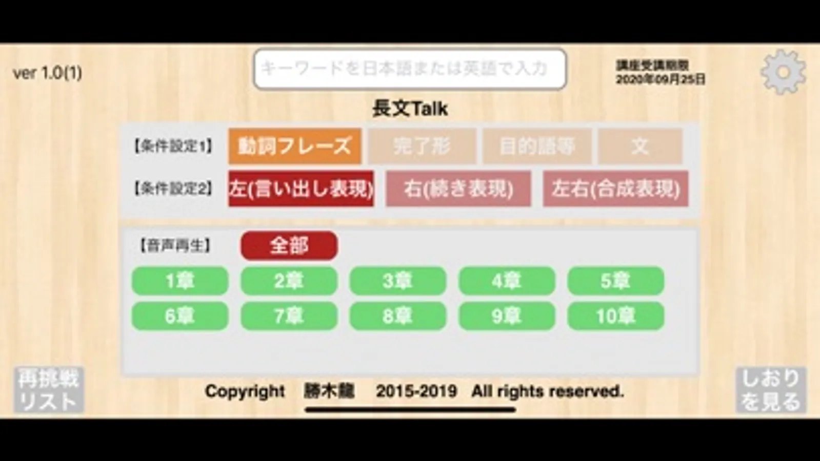 ・アプリの中に入っているフレーズを、日本語、または、英語のキーワードで検索することができます。