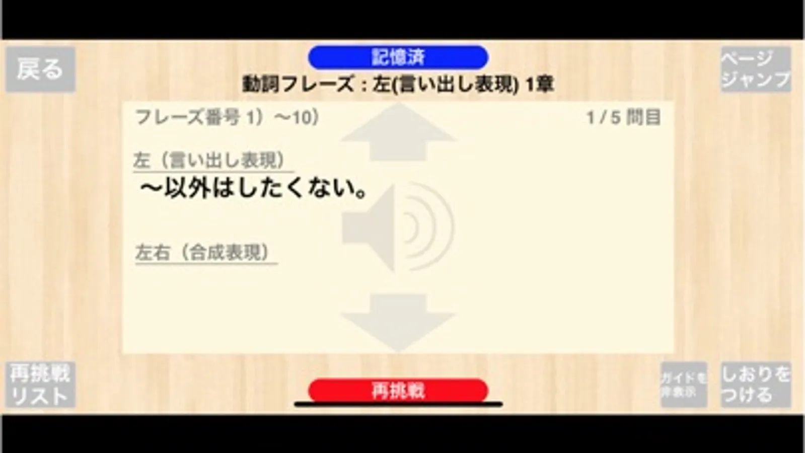 ・そして、「再挑戦テスト機能」を使って、英語を言い当てられなかったもののみを繰り返しテストし学ぶことができます。