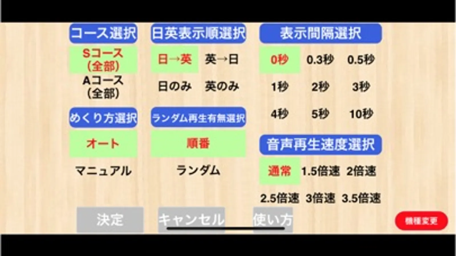 (2)カード聞き流し機能(めくり方=オート)