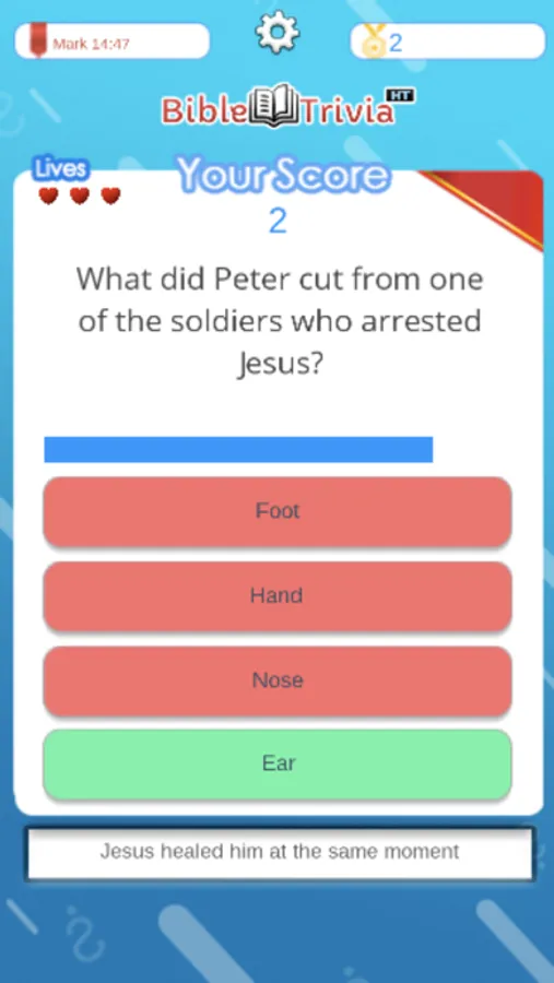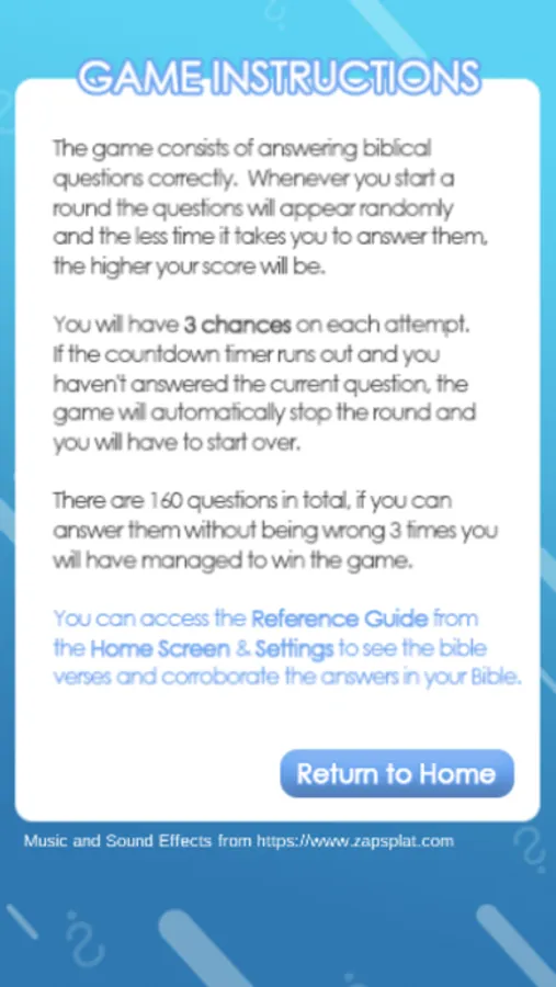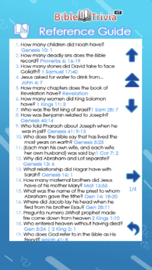 This game is about answering biblical questions correctly. Whenever you start a game the questions will be different as they will appear randomly or randomly, the less time you take to answer them, the higher your score will be.