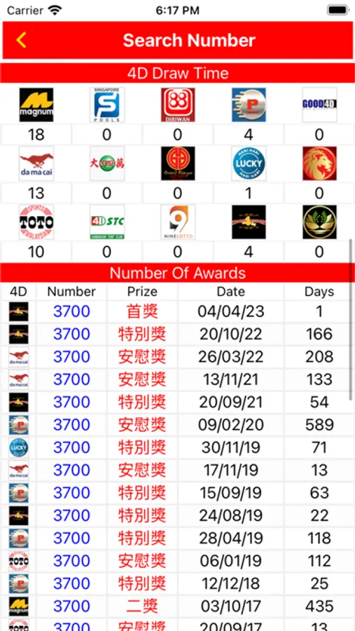 + My Favourite Number (Favorite your 3D & 4D, If Number Won will show at 4D Results Page)
