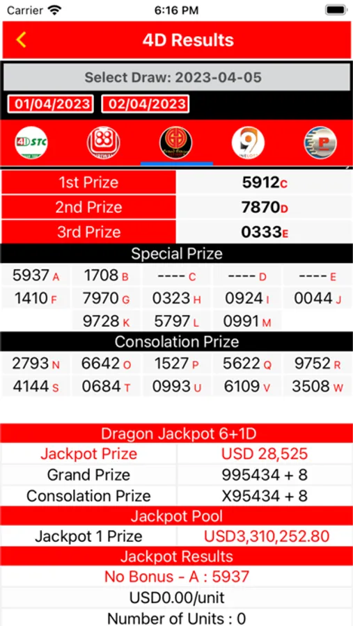 With every effort made to ensure the accuracy of the 4D results published on this App, we do not warrant its accuracy for several reasons including time delays incurred in completing necessary updates.All contents/4D results provided herein is solely for information purposes and is provided on an "As Is" basis only without any warranty or representation of any kind, expressed or implied, as to their accuracy, completeness, timeliness or otherwise. In no event shall the owners of this App have any responsibility or liability for any damage and/or losses incurred (whether arising directly or indirectly) in connection with any accuracy, timeliness, errors, omission and/or information appearing herein and/or on the website.All logos, brands and product names referenced herein are the trademarks or registered trademarks of their respective holders. This site is not affiliated to any of the organisations linked or described. We do not provide, promote or encourage any form of gambling services / activities.