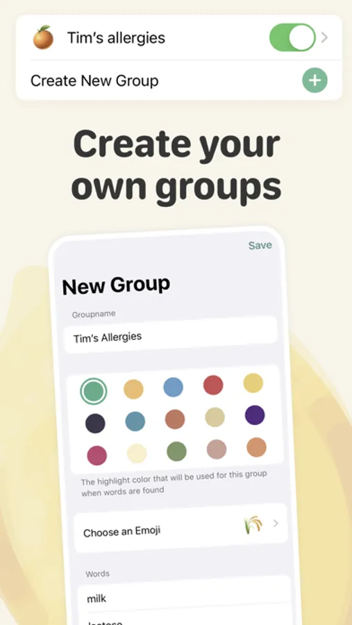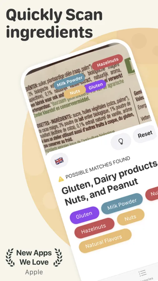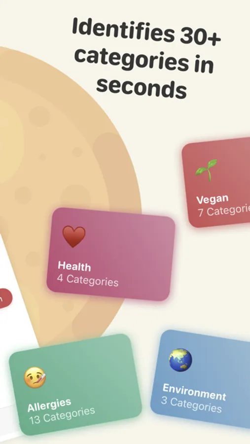It includes more than 30 categories for common allergies, a vegan lifestyle, pregnant women, high environmental impact, additives, health and more! Point your camera at an ingredient list and words you have enabled are highlighted instantly.