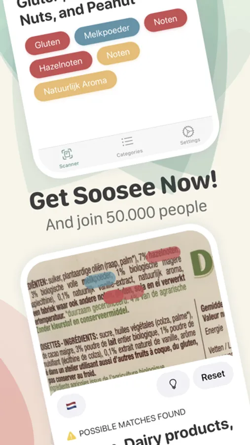 Soosee scans ingredient labels instantly to warn you about ingredients you want to avoid.