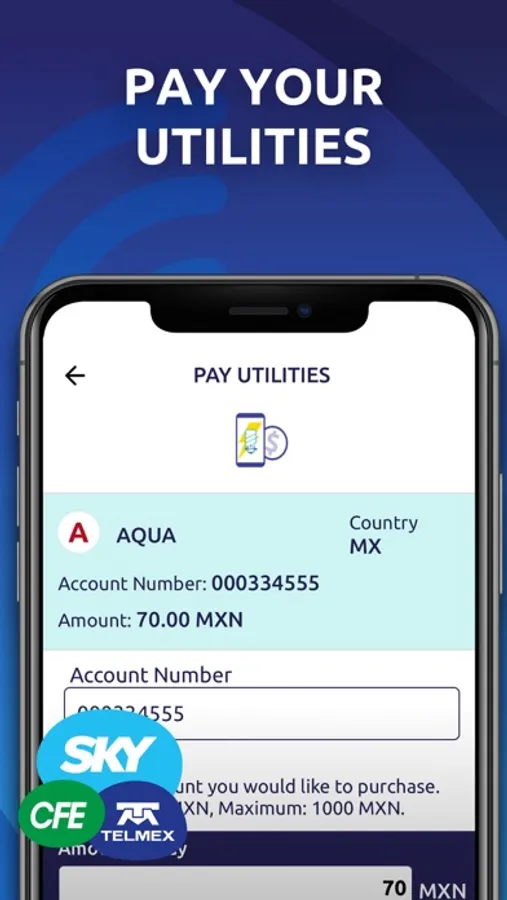 Setup your account and pay your service provider in seconds.