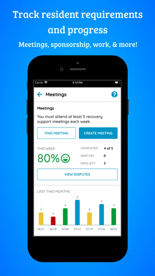 Sponsorship - residents can update their sponsor information and check into a meeting with their sponsor, as well as track their step progression