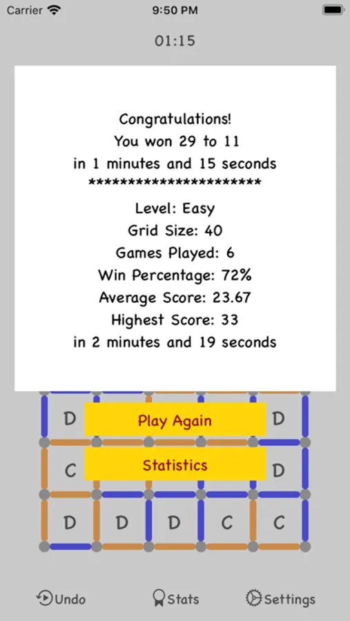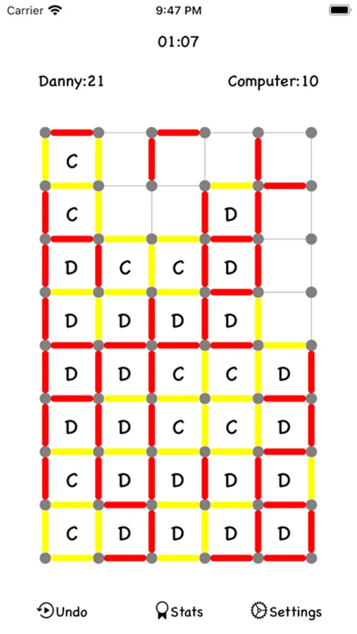 Dot.Line-, also known as Dots and Boxes or simply Dots, is a classic game, traditionally played by two people with paper and pencil. Players take turns drawing lines and trying to capture the majority of cells on the grid. A cell is captured when the player draws the last of the four lines required to complete its borders. The player that captures a cell then gets another turn to draw the next line. Easy, right? :)