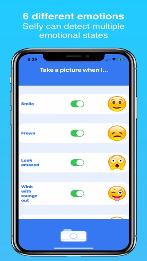 Selfy – AI Camera is a smart camera powered by AI that detects your facial expression and snaps a picture. Whether you're smiling , frowning or showing a look of shock ; Selfy – AI Camera will detect your expression and promptly snap a picture. Say hello to hands free pictures :).